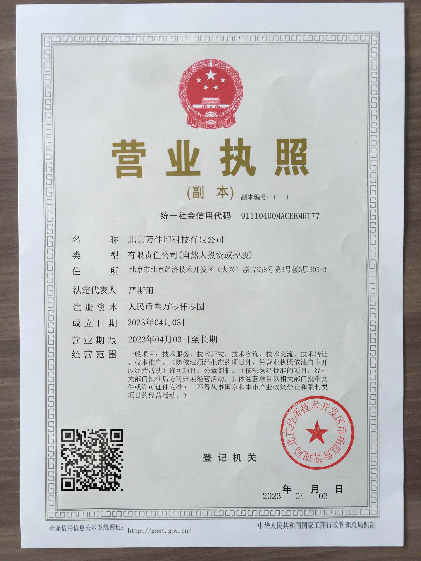 Corporate name:Beijing Wanjiayin Technology Co., Ltd.